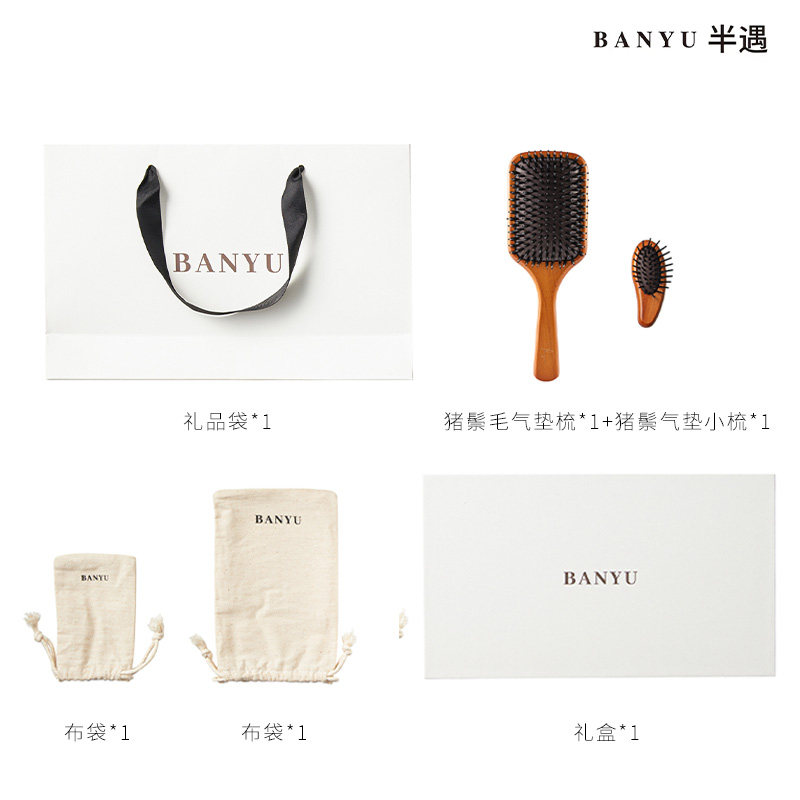 【BANYU半遇】榉木猪鬃梳女士气垫梳头部按摩家用便携气垫梳礼盒