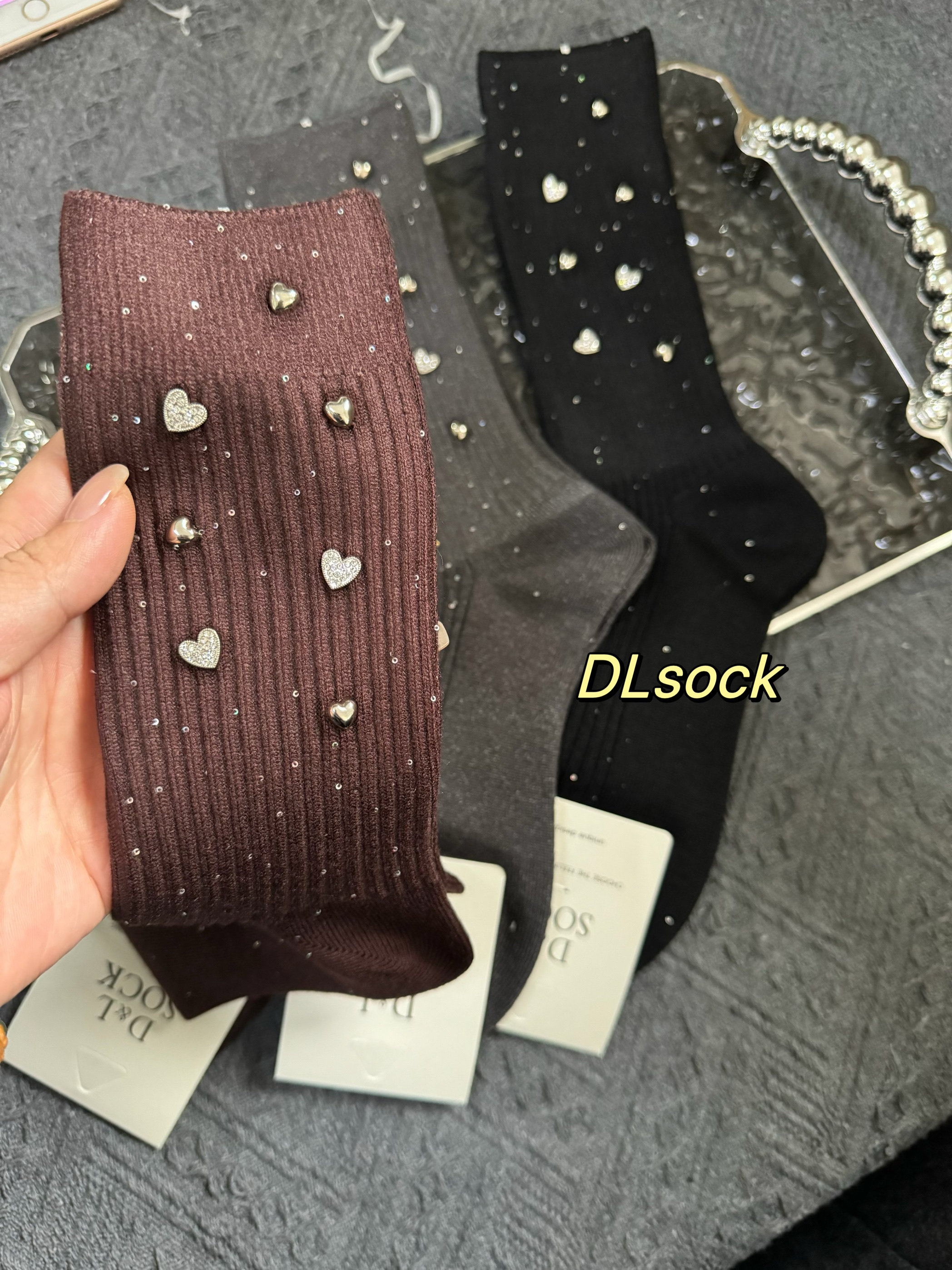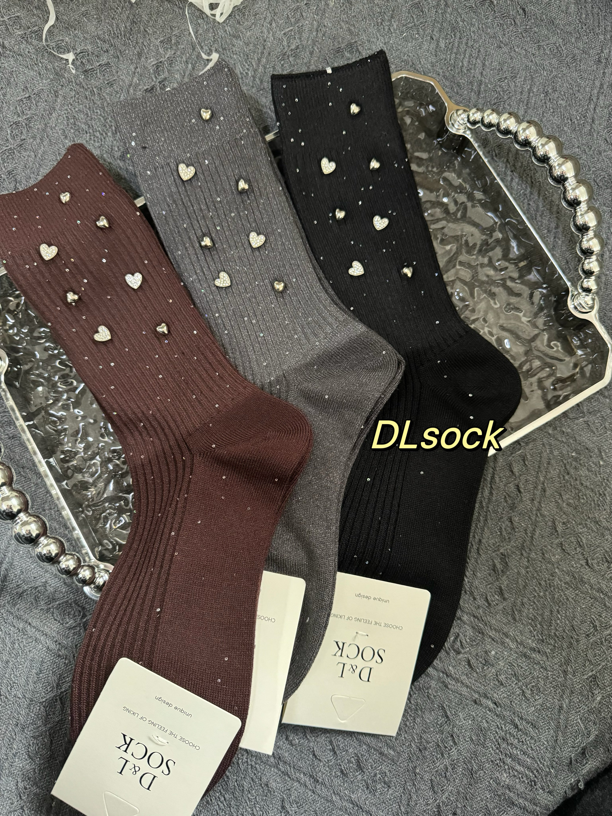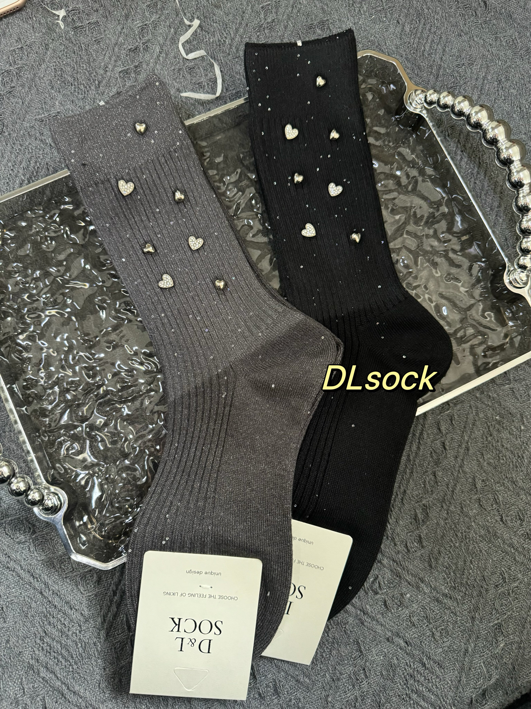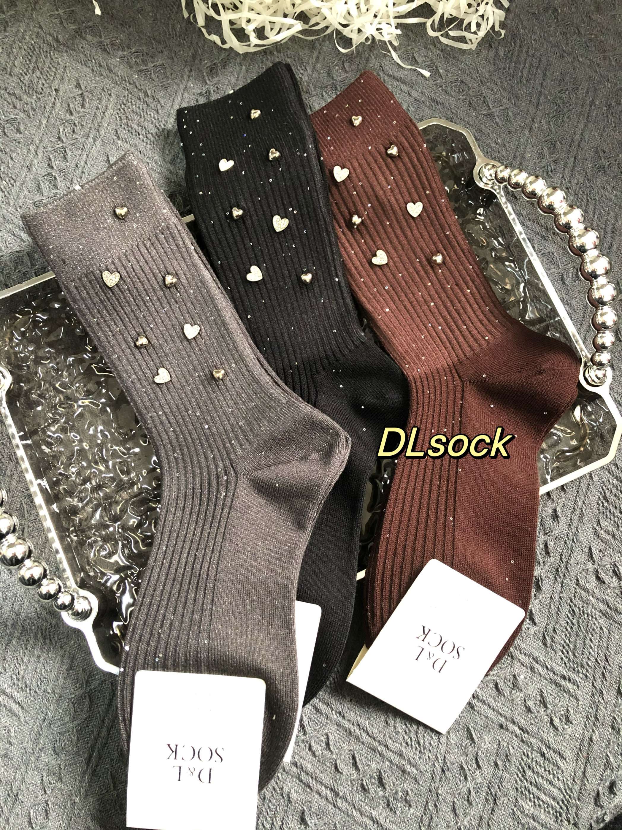 DL欧货立体重工秋冬女袜中筒袜子长袜高颜值烫钻潮袜满天星贵气