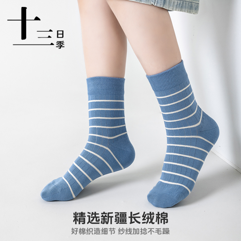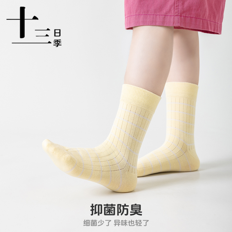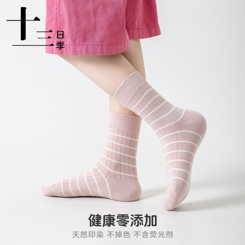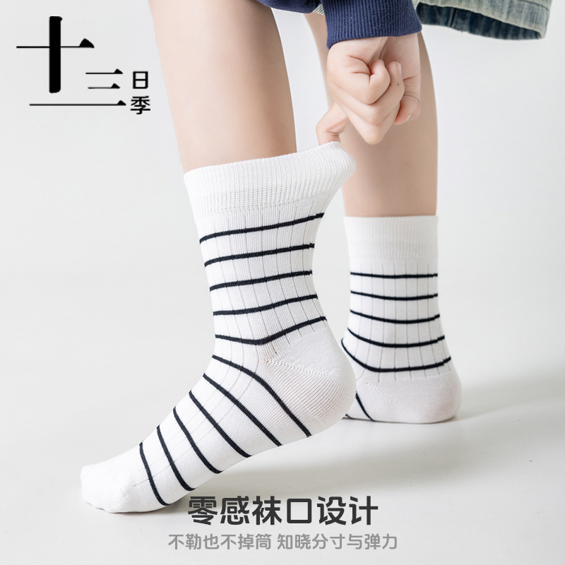 十三日季儿童袜春夏季纯棉抑菌防臭吸汗透气运动休闲条纹中筒袜子