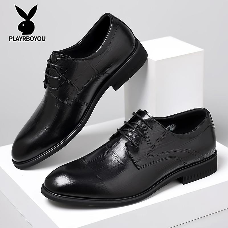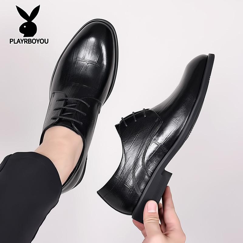 皮鞋男2025新款商务正装男士皮鞋休闲透气软黑色底软面英伦结婚鞋