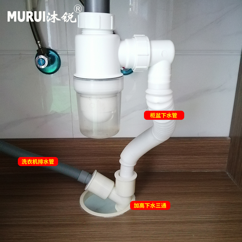 洗衣机下水管三通地漏接头加长加高三通下水排水管道二合一三头通