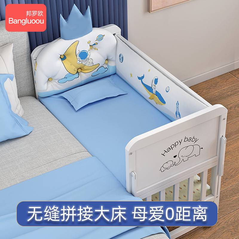 婴儿床实木环保欧式多功能拼接大床宝宝bb可移动新生儿童摇篮床