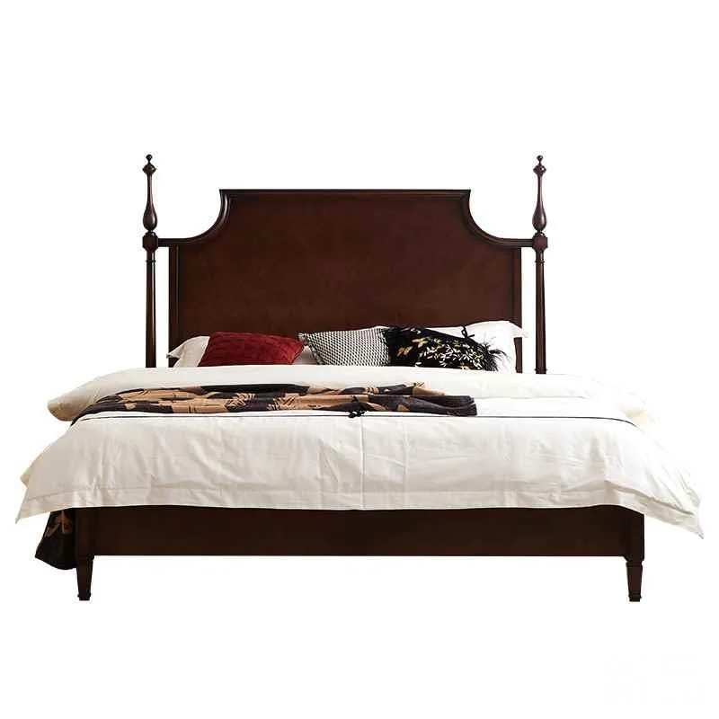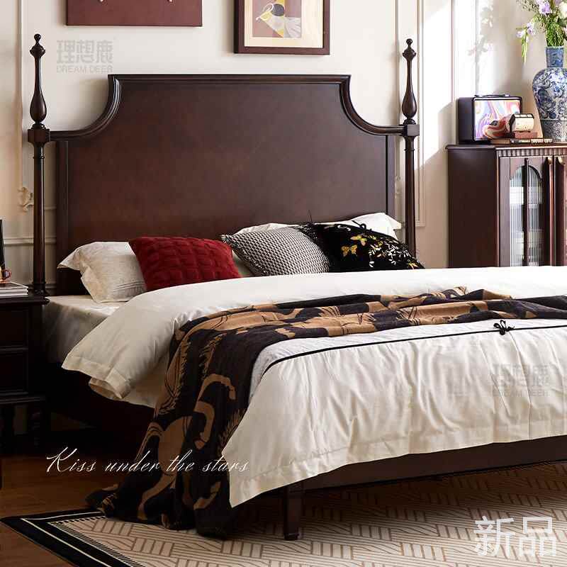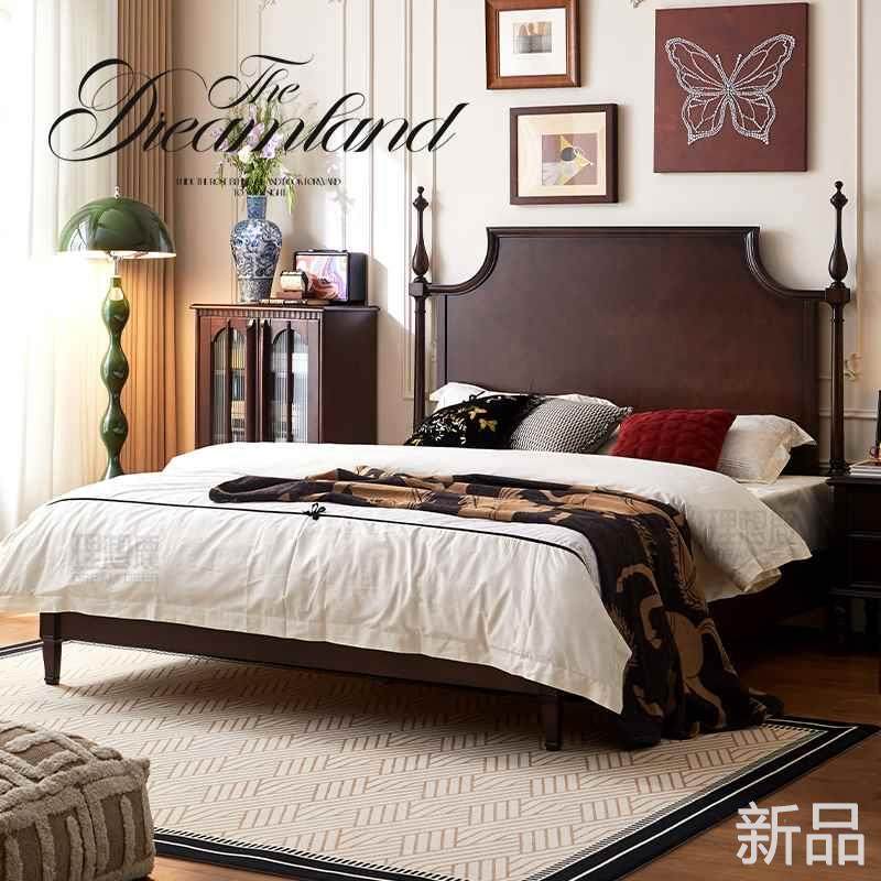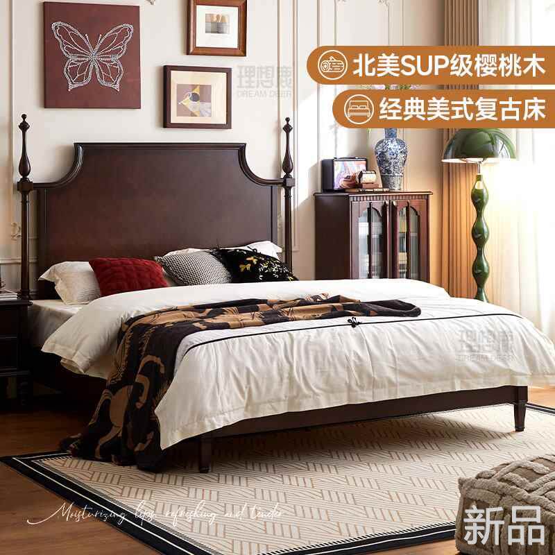 美式复古实木床樱桃木法式中古奢双风轻人主卧高端大气婚床高新品
