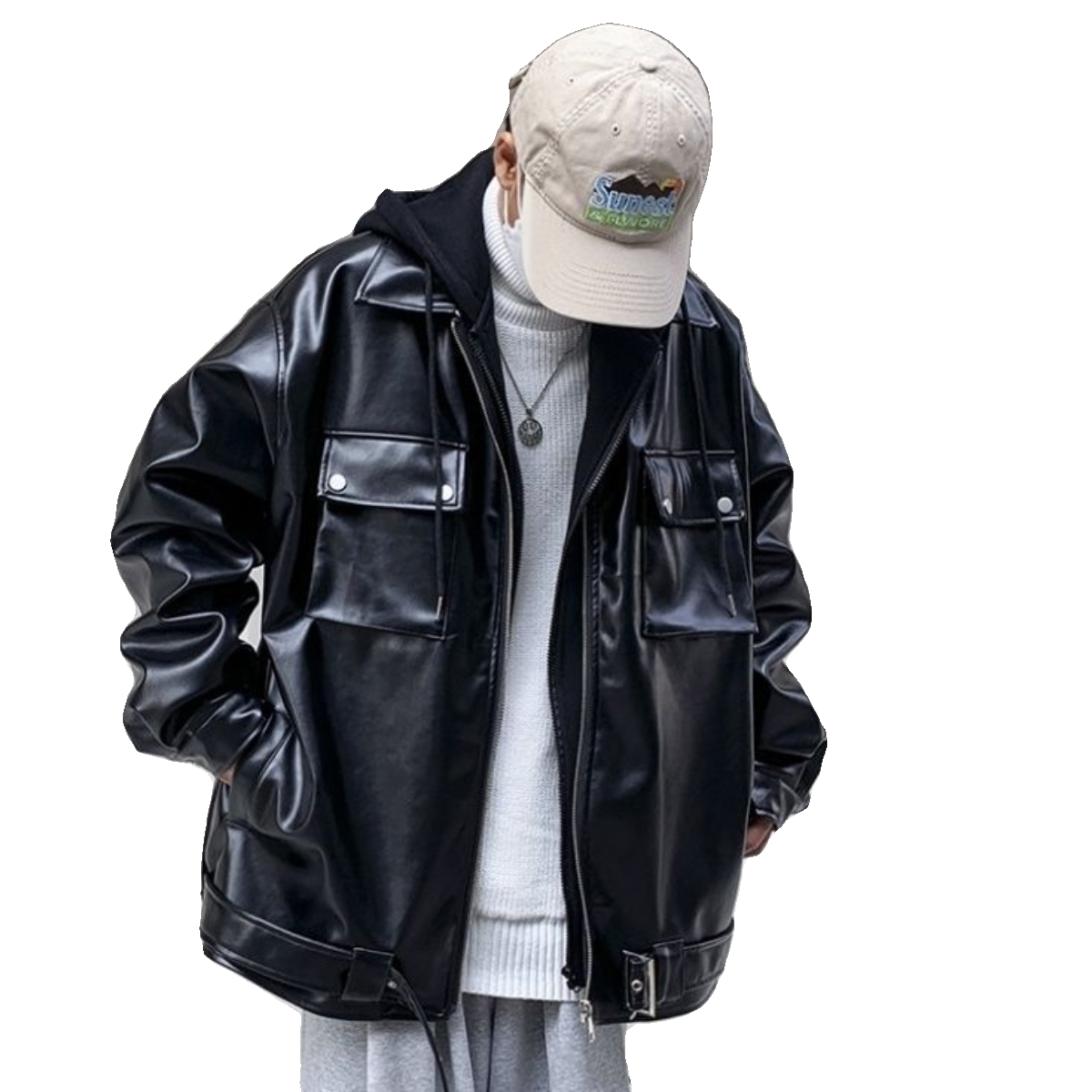 春秋季皮衣外套男宽松港风假两件pu皮夹克潮流痞帅高街机车服上衣