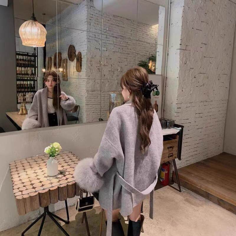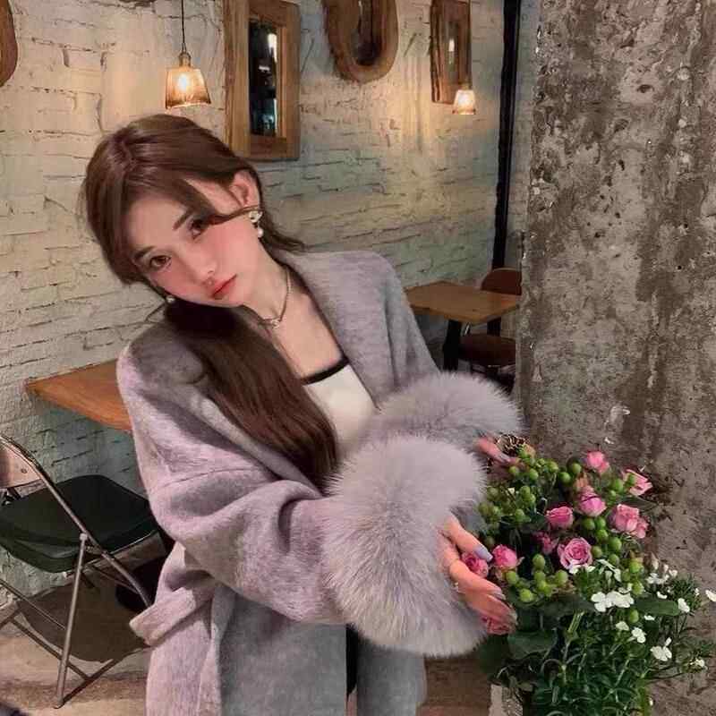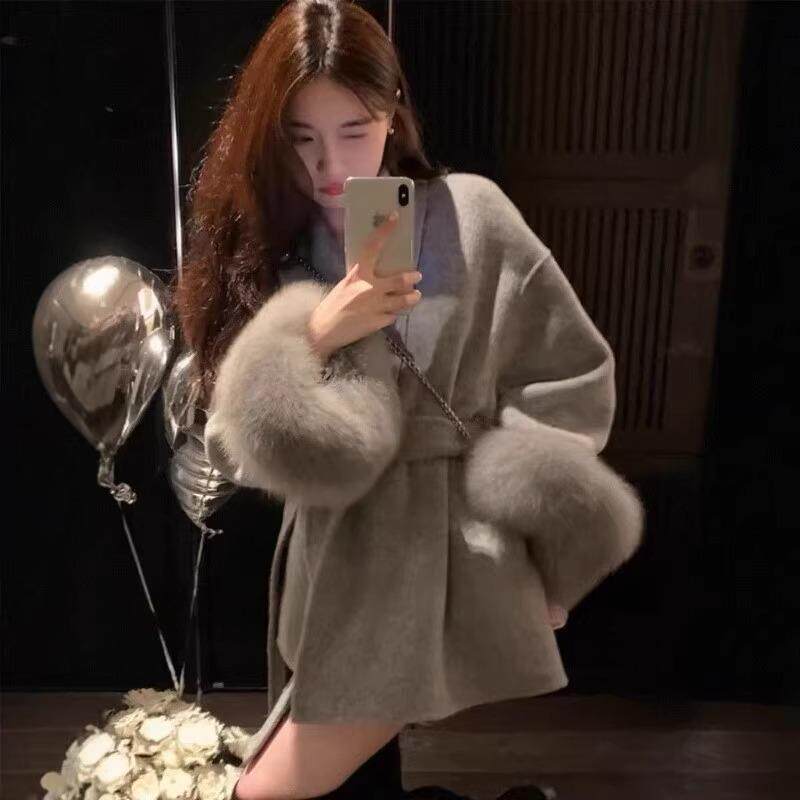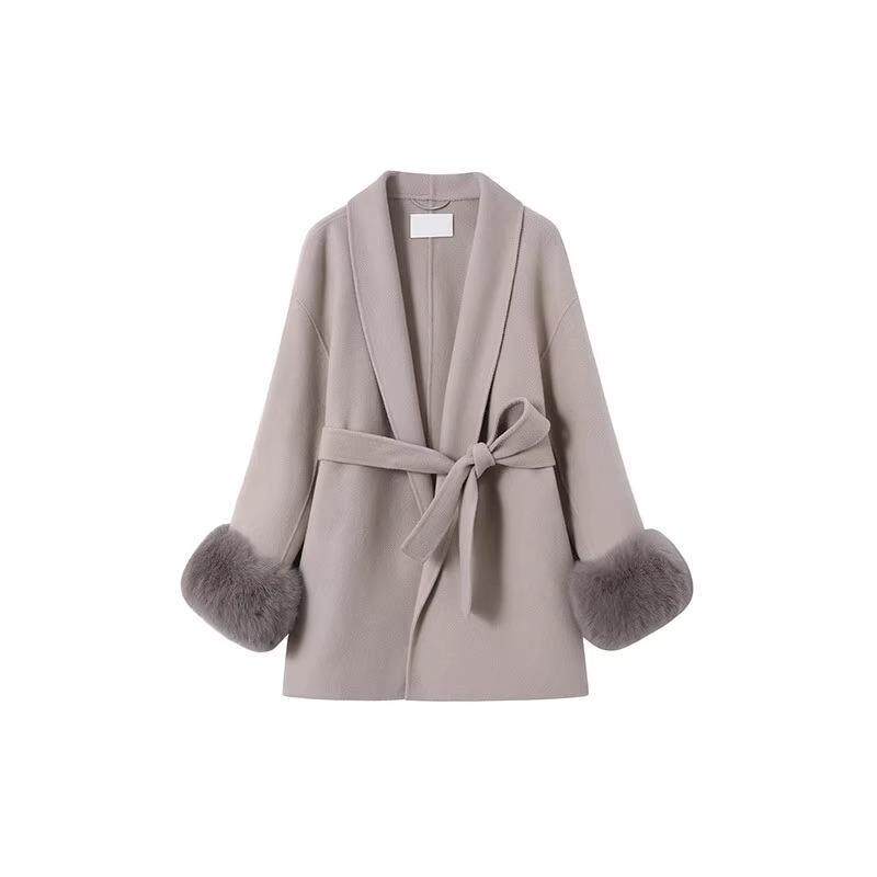 可拆卸狐狸毛双面呢子羊毛大衣女冬季2024新款小个子洋气毛呢外套