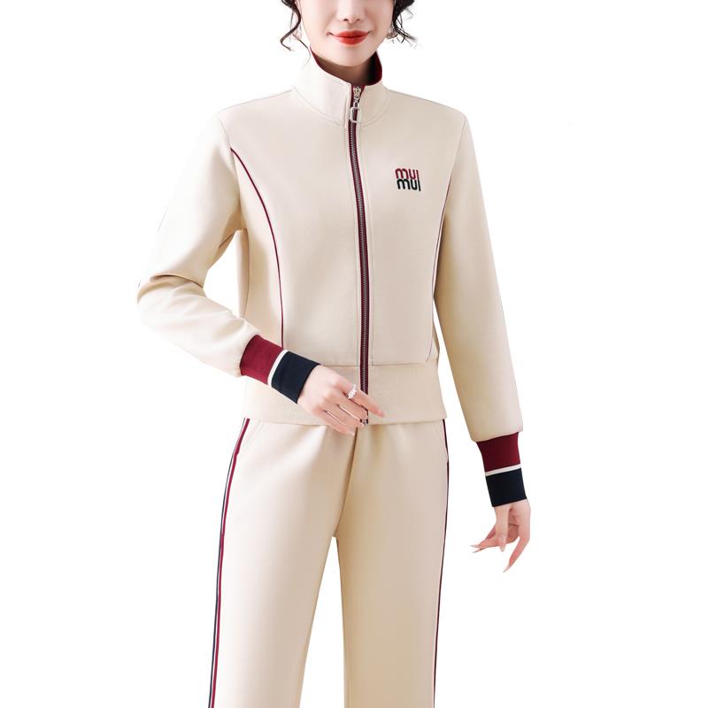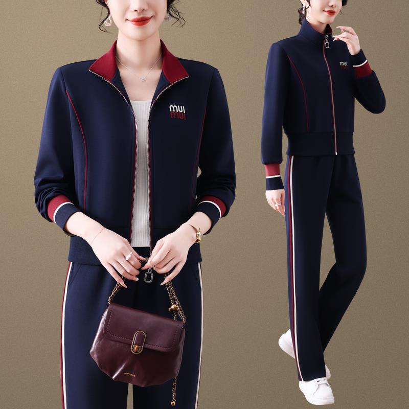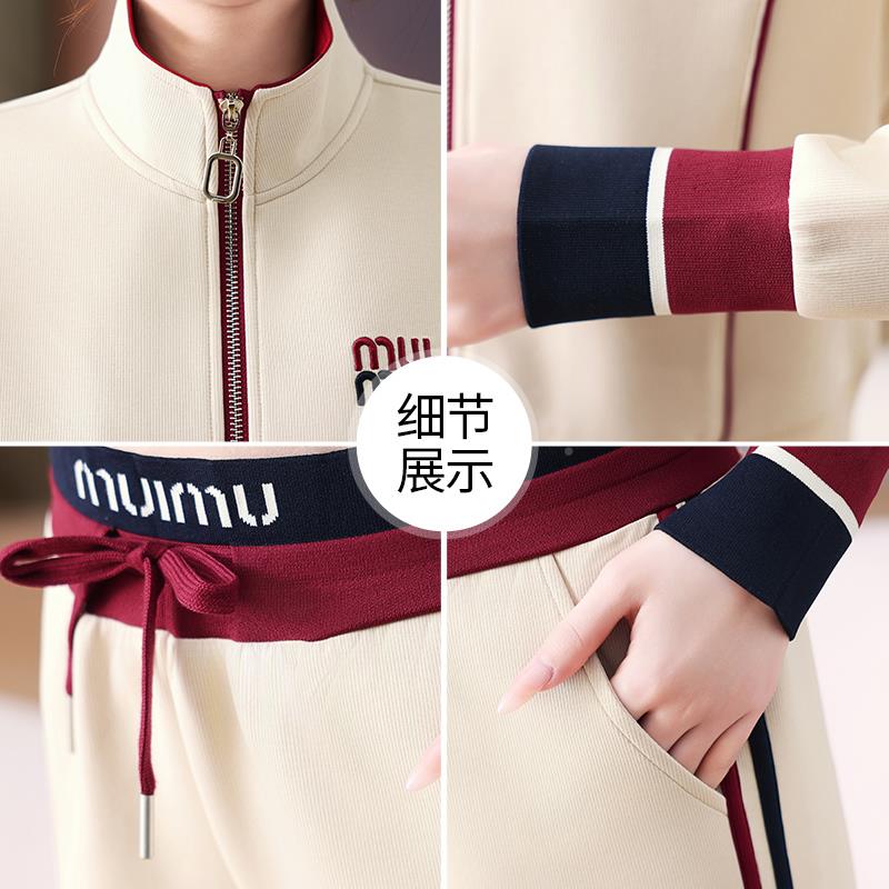 休闲运动套装春秋减时尚8767225洋气龄立领衫卫衣女阔腿裤开两件