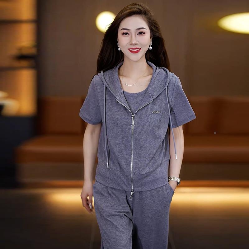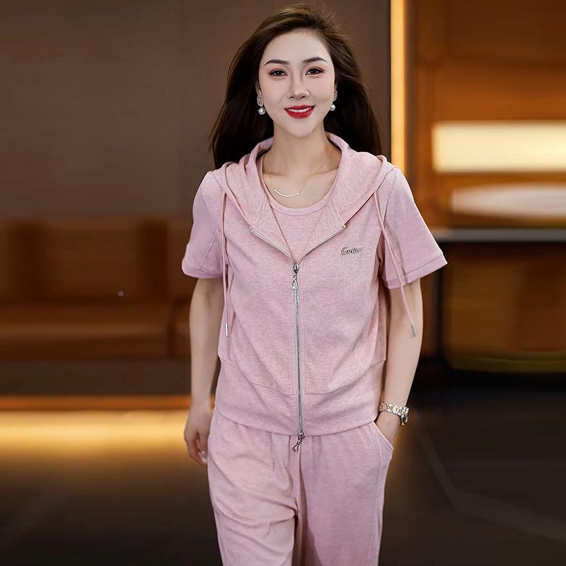 运动装女夏季新款洋时尚宽松气女士休短袖长裤闲89825891跑套步两