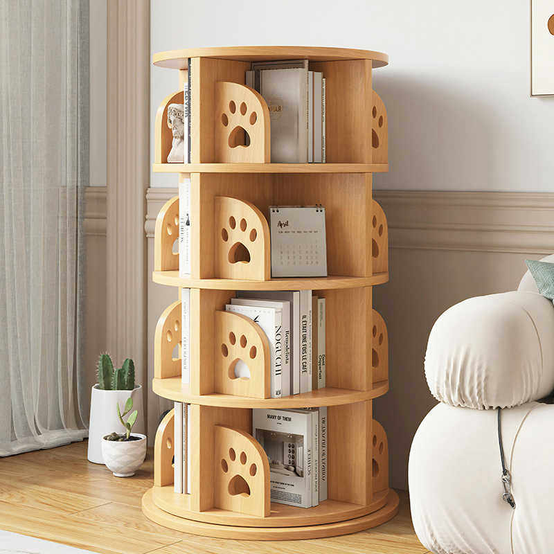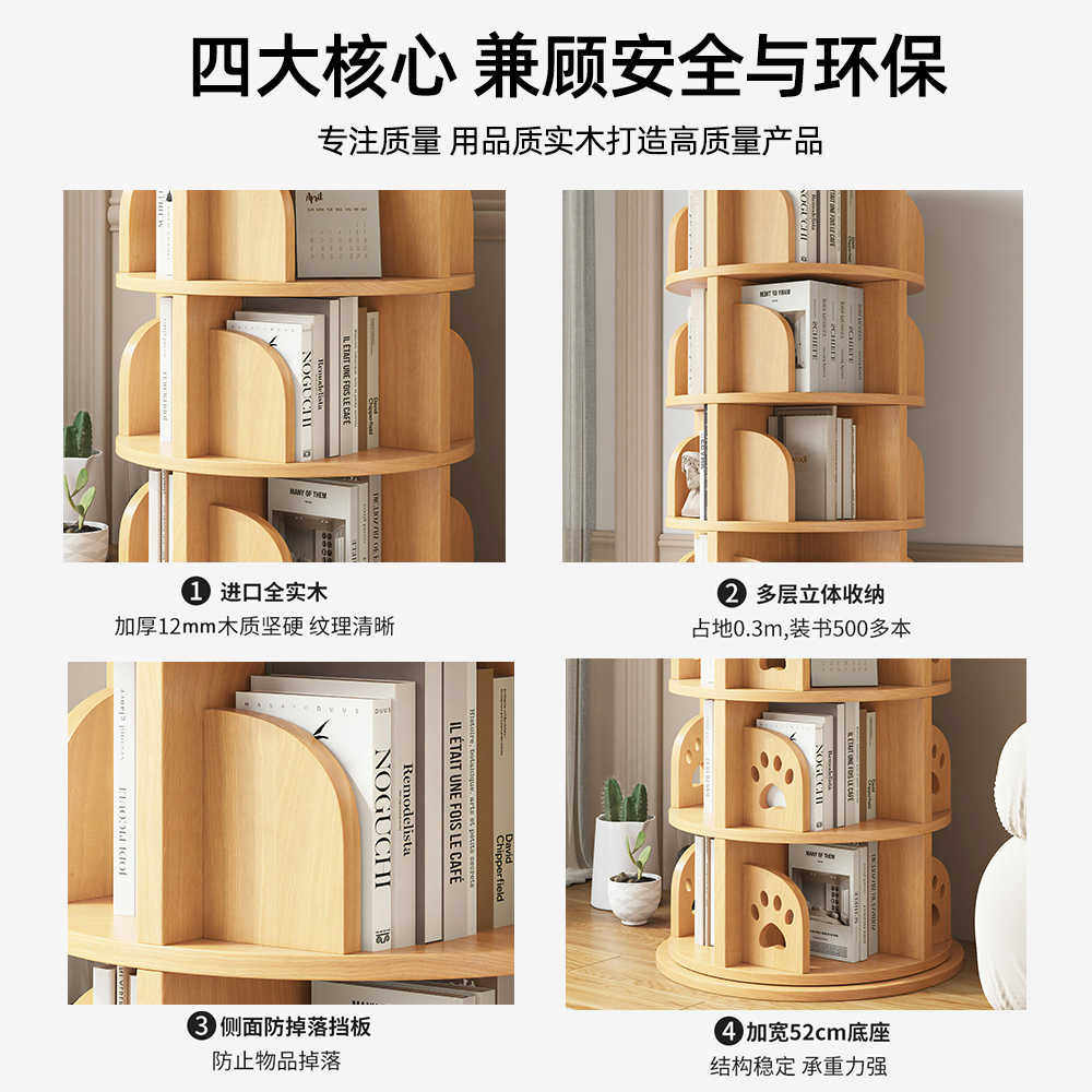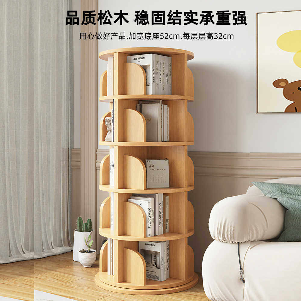 实木旋转书架360度书柜家用多层简易置物架小户型角落客厅收