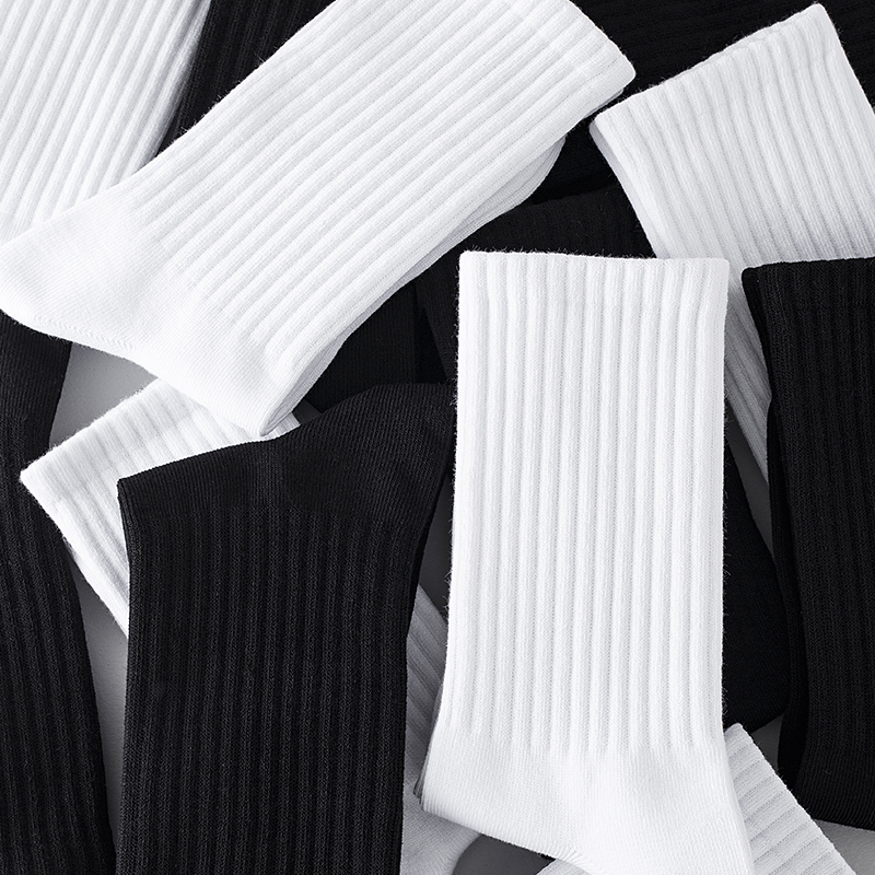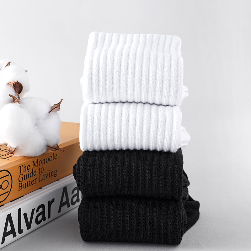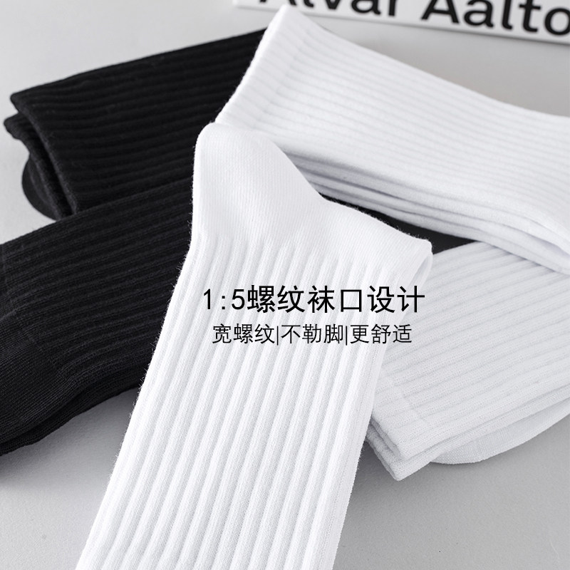 4双袜子男长筒袜高帮黑白纯色商务百搭秋冬中筒纯棉防臭男士长袜