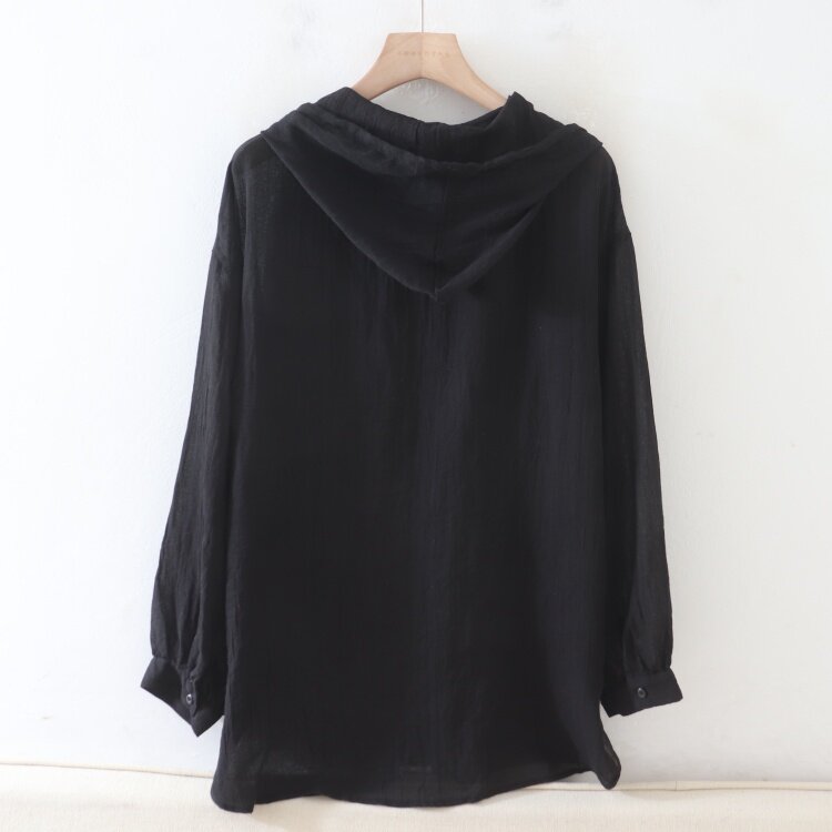 P06022日单褶皱纹理设计感长袖连帽单排扣柔软轻薄休闲衬衫大码