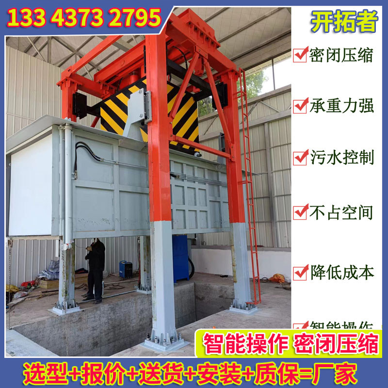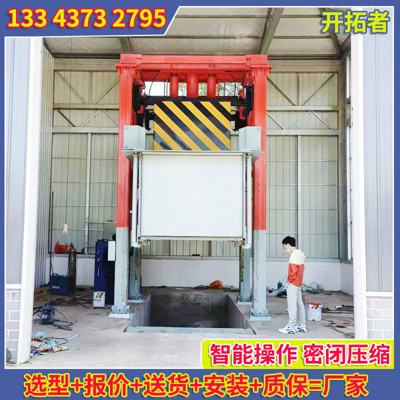 三缸四柱垂直式压缩垃圾中转站设备 8立方提升式垃圾压缩机采购