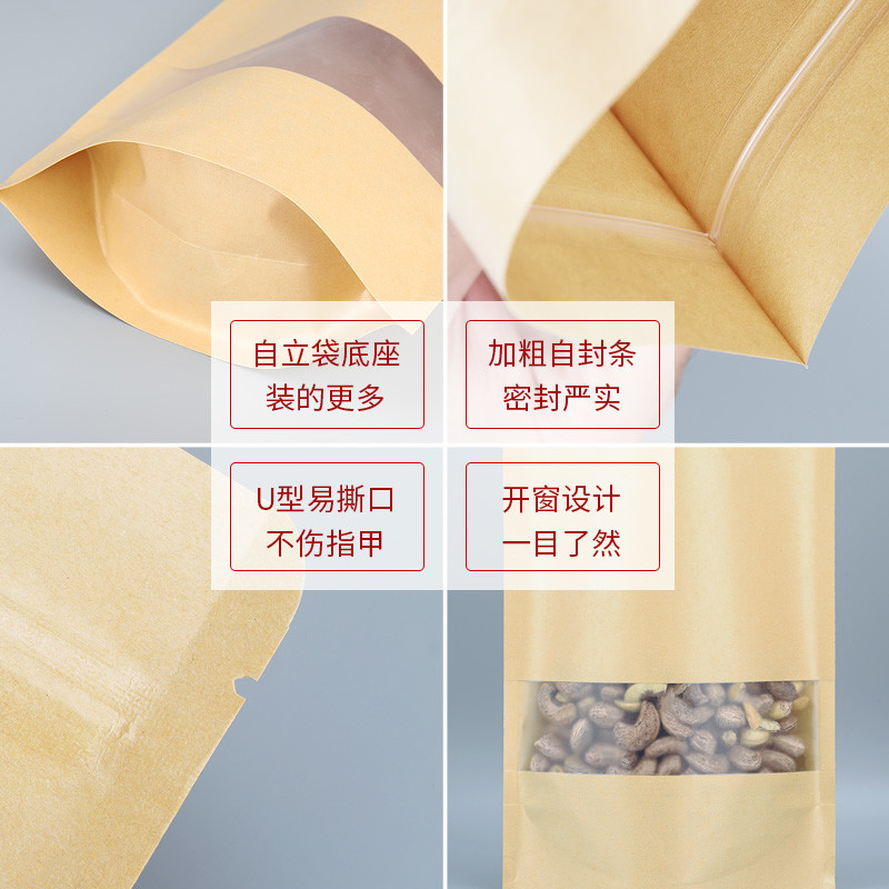 牛皮纸袋开窗加厚自封袋干果礼袋包装袋茶叶花茶密封袋支持定制
