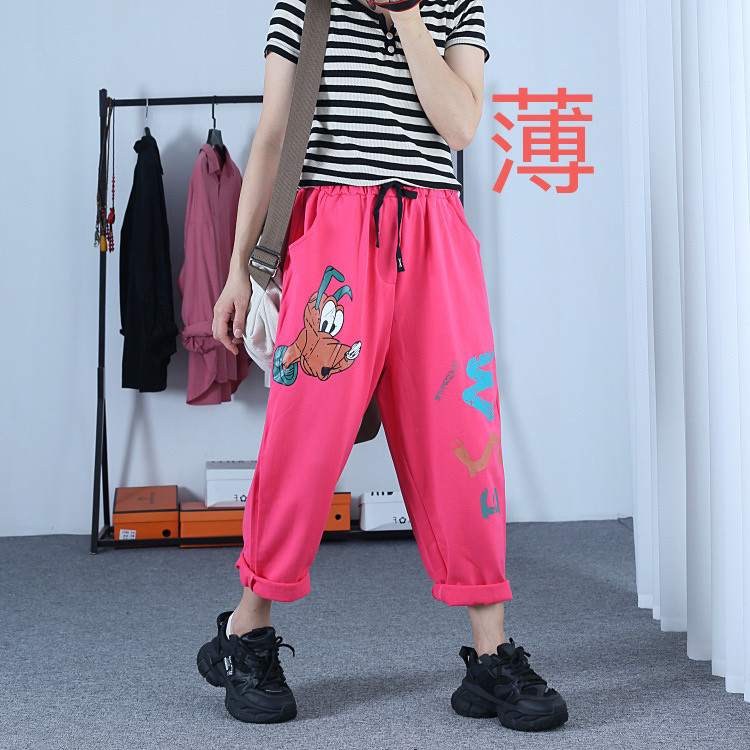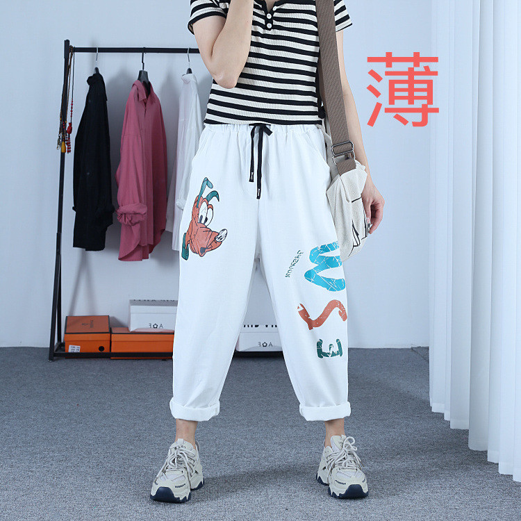 新款加绒大码女休闲裤胖mm梨型腿显瘦哈伦裤松紧腰宽松萝卜老爹裤