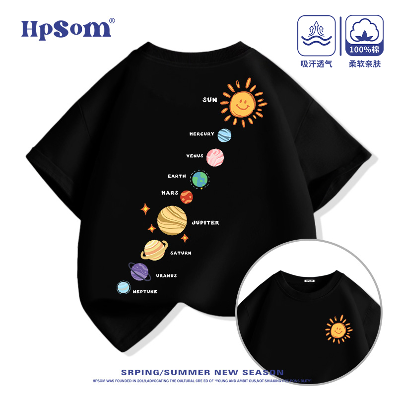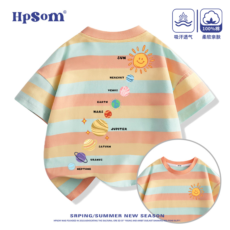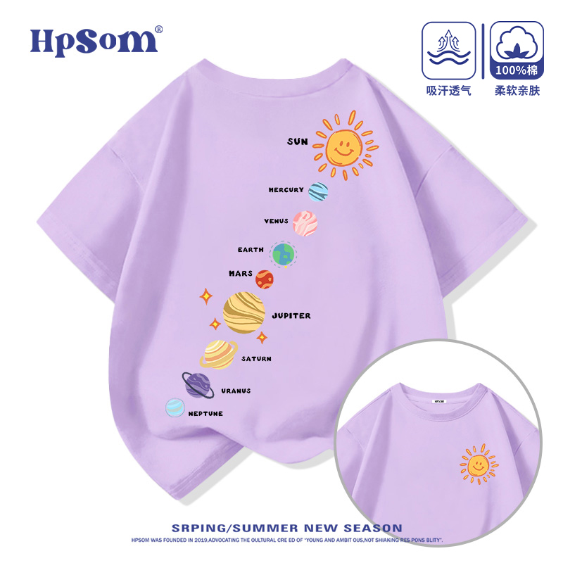 男童短袖纯棉t恤2025新款女孩夏季上衣洋气半袖儿童透气中大童装
